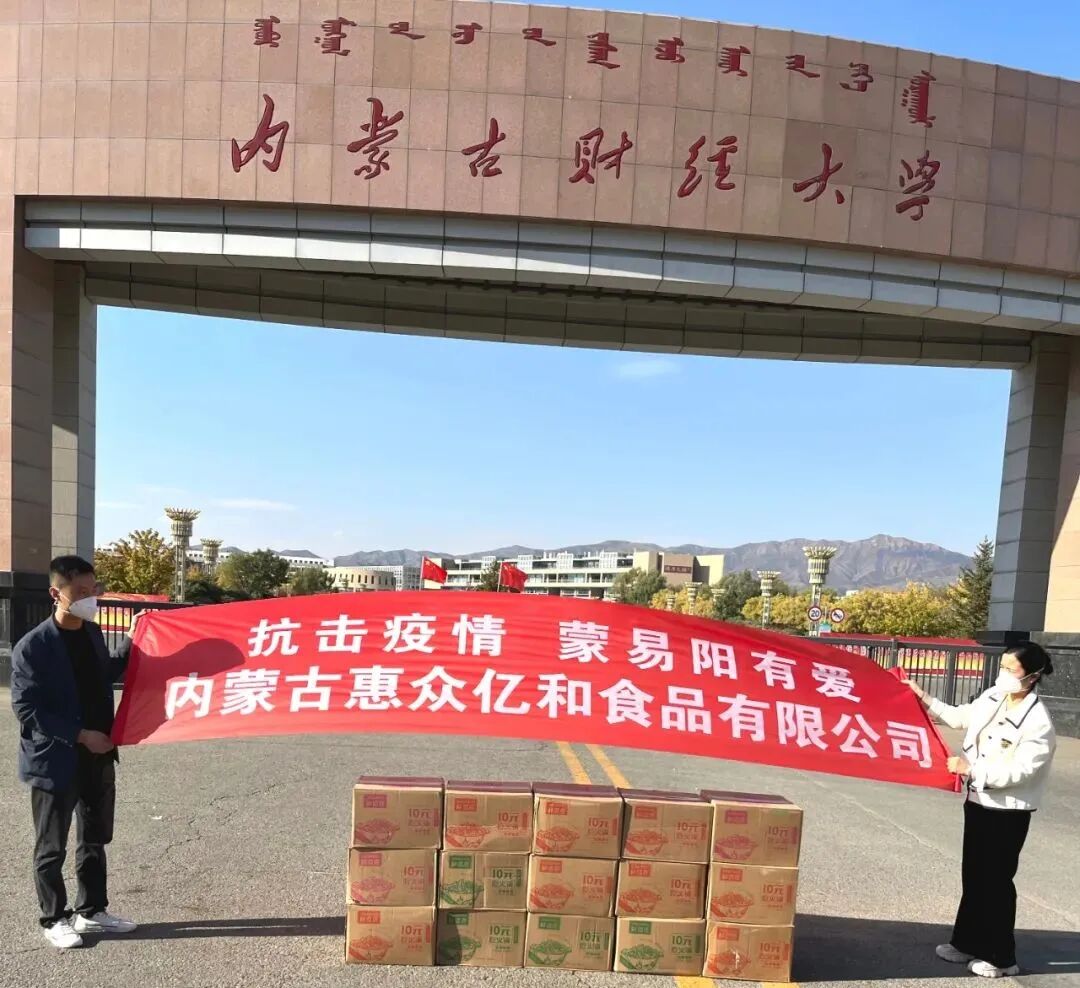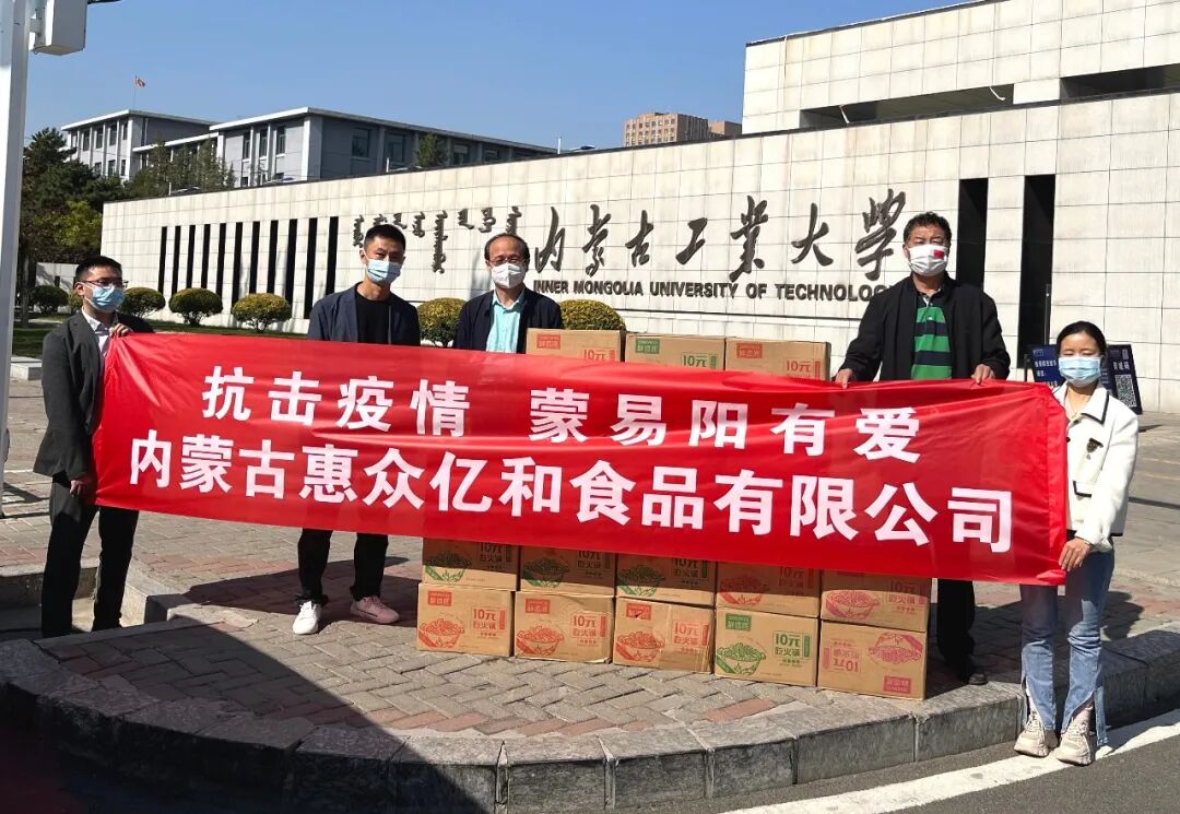 9月29日,青城疫情爆发以来,内蒙古川渝商会闻令而动,会员单位积极响应,勇担责任,用大爱温暖青城,用担当书写赞歌,成为战“疫”一线一道美丽的风景线。 1、会长单位--双源建工集团董事长李鸿为内蒙古工业大学捐赠价值2万元的食品。 2、常务副会长单位--内蒙古三晋焦协能源有限公司总经理刘元福为内蒙古建校捐赠价值2万元的食品。 3、副会长单位--内蒙古帝菲办公设备有限公司、内蒙古良木办公家具有限公司总经理秦寿洪向内蒙古工业大学捐赠现金1万元。 4、商会会员单位--内蒙古惠众亿和食品有限公司总经理杨军分别向工业大学、财经大学、东乌素图社区捐赠价值1.5万元的食品。