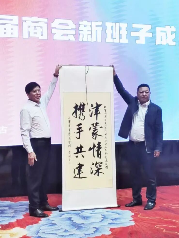 天津市重庆商会会长刘东福为李鸿会长赠送墨宝