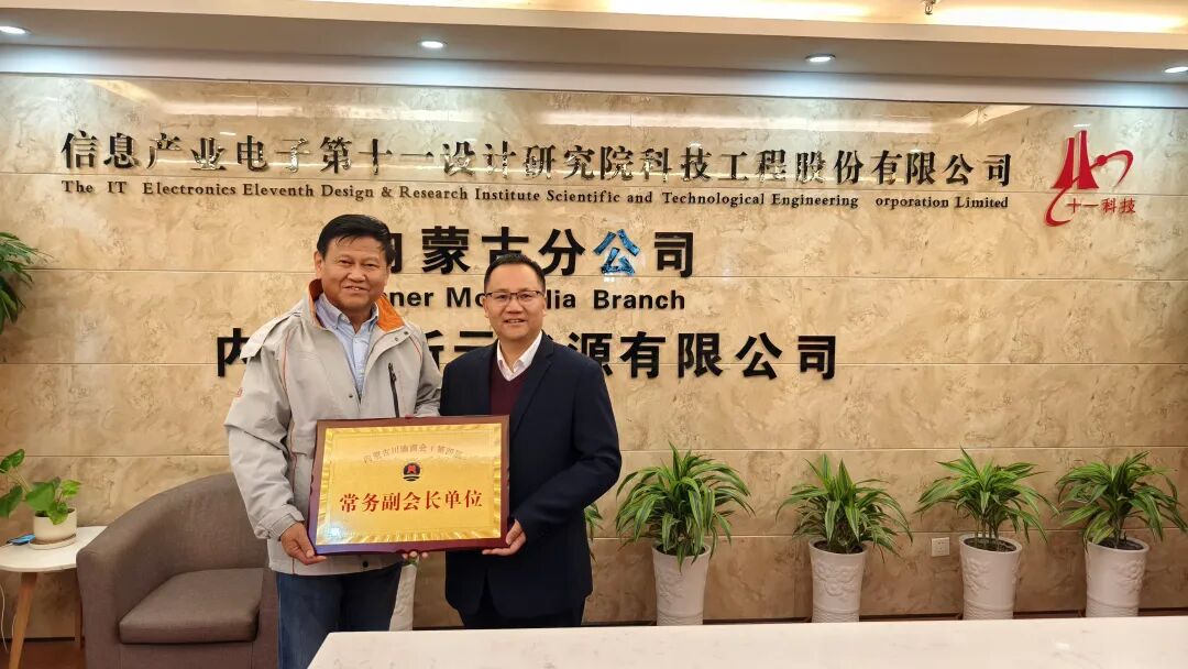 信息产业电子第十一设计研究院科技工程股份有限公司成立于1964年,原直属于电子工业部、工业和信息化部、中国电子信息产业集团有限公司(中央管理企业),总部设在四川成都。十一科技内蒙古分公司坐落在呼和浩特赛罕区绿地腾飞大厦D座16楼和19楼,现有设计人员80多人,工程人员近30人,电站运维人员40人,办公面积共计约2800多平米。公司资质:电力工程施工总承包贰级、石油化工工程施工总承包贰级、市政公用工程施工总承包贰级 、地基基础工程专业承包壹级、起重设备安装工程专业承包壹级、电子与智能化工程专业承包壹级、消防设施工程专业承包壹级、钢结构工程专业承包贰级、建筑装修装饰工程专业承包壹级、建筑机电安装工程专业承包壹级、古建筑工程专业承包壹级、环保工程专业承包贰级。内蒙古分公司归属华北区管辖,作为十一设计院在内蒙古自治区的基地和窗口,分院所涉及到的业务包括工程设计、工程总承包、设计咨询、光伏太阳能项目总承包、光伏太阳能项目开发及光伏电站运维管理等,先后在内蒙古投资近15亿元,建设了7个光伏项目;承担中环光伏材料有限公司一期、二期、三期新建项目,内蒙古国电晶阳多晶硅项目,内蒙古神舟硅业太阳能发电站,内蒙古日月太阳能科技有限责任公司新建厂房,创维电子(内蒙古)有限公司二期项目、山西大同采煤沉陷区国家先进技术光伏示范基地左云县贾家沟10万千瓦项目等一系列有影响项目的设计和总包工作,凭借着雄厚的实力和优良的服务获得了业主的好评,逐步成为自治区内有影响的设计院。陶建秘书长对公司的发展成就表示赞赏,并希望双方能够在未来进一步加强合作,并鼓励他们继续发挥自身优势,为商会的发展和行业的繁荣贡献更多力量。两家单位负责人表示,将积极响应商会的号召,加强与其他会员企业的交流与合作,共同推动行业的持续健康发展。